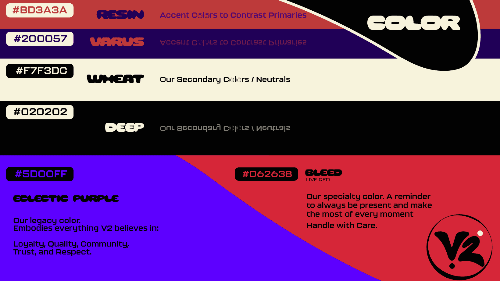 Thz Studio developed the brand identity for V2 Collective as a sharp, adaptable system built around duality and contrast. The core mark centers on a refined V and 2 monogram, balancing precision with fluidity to avoid feeling overly corporate while still carrying authority. he identity was designed to flex across event flyers, digital assets, motion, and themed drops without losing recognizability, allowing each event to feel distinct while remaining unmistakably V2.